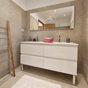 • 1 salle de bains (double douche + double-vasque + WC + lave-linge).