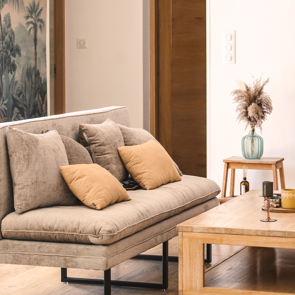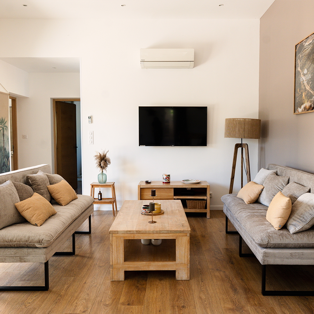 • 1 séjour/salon spacieux donnant sur la terrasse et la piscine.